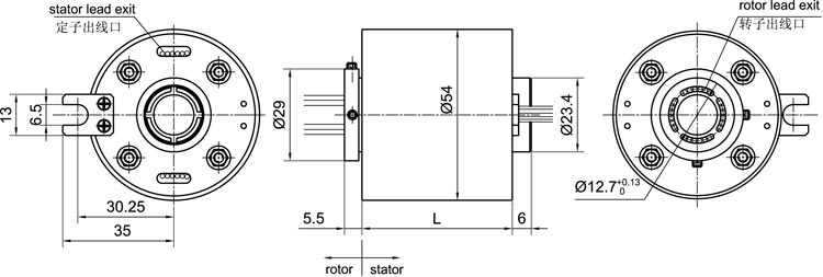 ■ 因我們的帽型滑環(huán)轉(zhuǎn)動(dòng)扭矩很小,因此可將內(nèi)圈部分導(dǎo)線保護(hù)好后直接用于轉(zhuǎn)動(dòng)或固定;