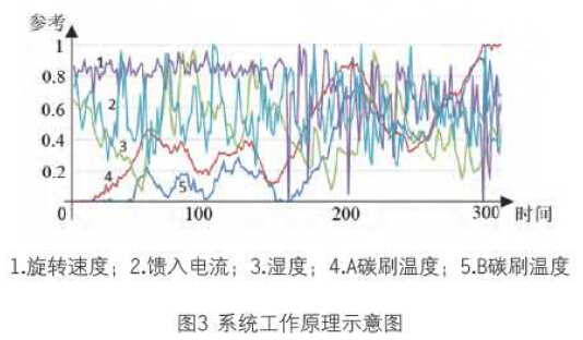 實(shí)時(shí)監(jiān)測(cè)系統(tǒng)參考了《IEC61400》測(cè)試標(biāo)準(zhǔn)中的要求,并考慮了實(shí)際測(cè)試的需要,能實(shí)時(shí)采集與運(yùn)行狀態(tài)有關(guān)的各物理量如轉(zhuǎn)速、饋送電流、溫升、濕度、風(fēng)速、風(fēng)壓等。根據(jù)測(cè)試結(jié)果來(lái)分析碳刷與滑環(huán)之間的對(duì)偶材料更換、接觸電阻大小、接觸電阻變化量、冷卻方式和除塵方式優(yōu)化、磨損率快慢等因素的變化對(duì)電滑環(huán)運(yùn)行特性的影響。