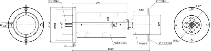 全盛氣電滑環(huán)電信號(hào)與氣路、液路混走; 結(jié)構(gòu)緊湊