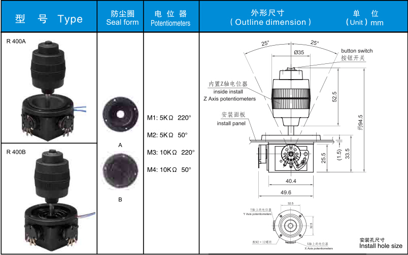 端子型號、引線長度、防塵蓋、開關(guān)、電位器型號規(guī)格、操縱手感輕或重